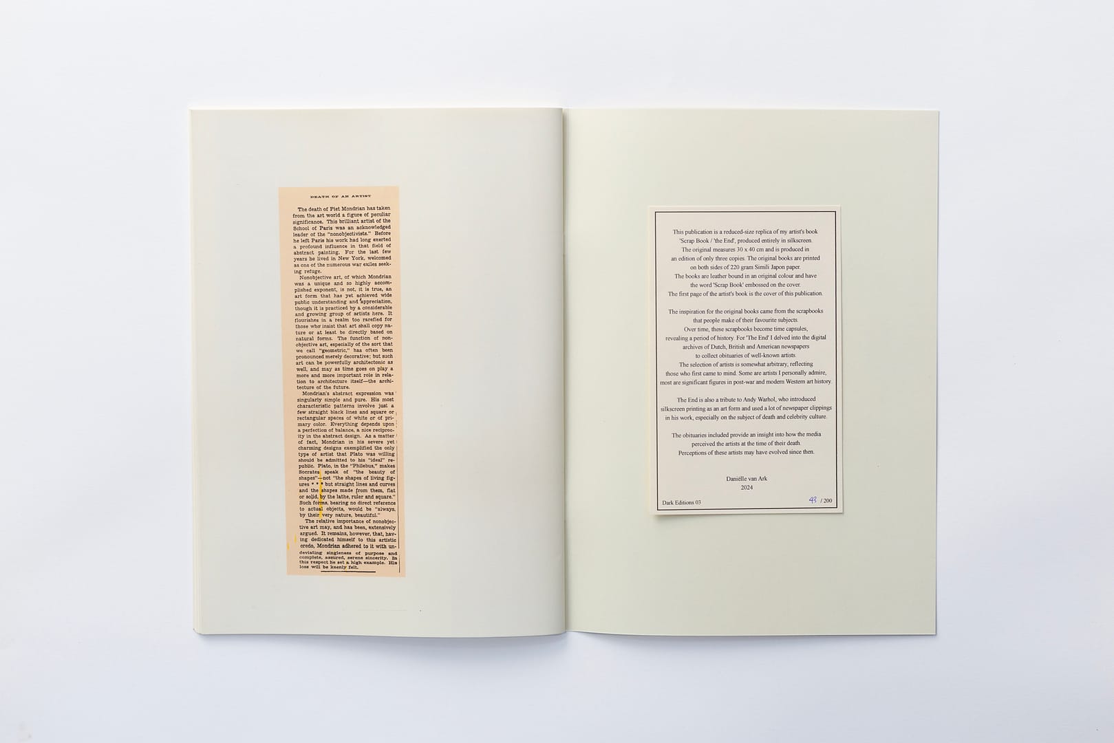 This publication is a scaled down replica of an artist book Scrap Book / the End,